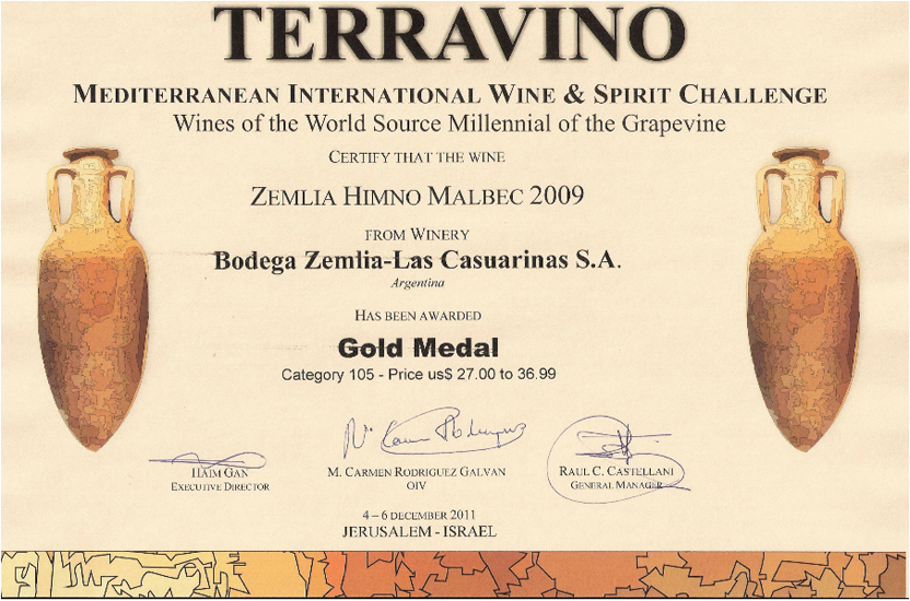 Oro en TERRAVINO (Mediterranean International Wine & Spirit Challenge) - 2011