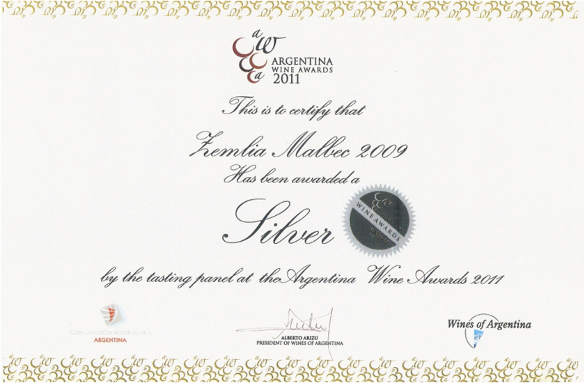 Plata en VINUS (Concurso Internacional de Vinos y Licores), Argentina - 2011